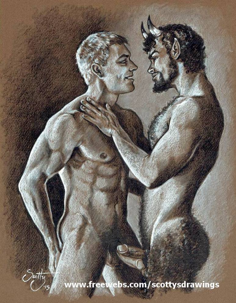 Fantasy drawing featuring Greek Satyr and his conquest…. Titled “Temptation”